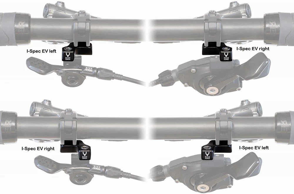 L’adaptateur BikeYoke I-spec EV permet Ă©galement de combiner les gâchettes SRAM avec les freins Shimano. Les adaptateurs sont compatibles avec les bascules et peuvent ĂŞtre montĂ©s aussi bien Ă gauche qu’Ă droite.