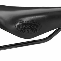 - Le logo emblématique de Brooks orne la plaque arrière et le gaufrage de chaque côté de la selle