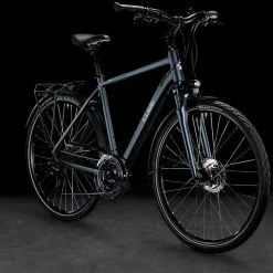The Cube Touring ONE’s full equipment package and comfortable design is all you need to broaden your riding horizons. Easy-to-use 3×8 Shimano gears make light work of any route by putting gear selection literally at your fingertips. Powerful disc brakes work better than standard brakes in the wet, for safer stopping.