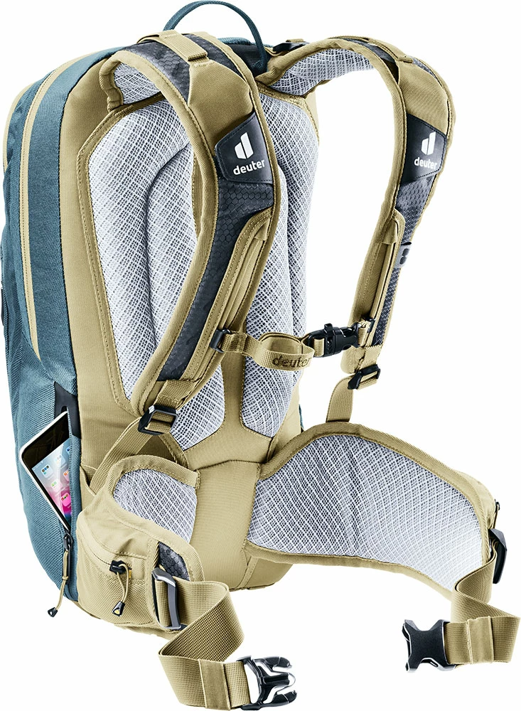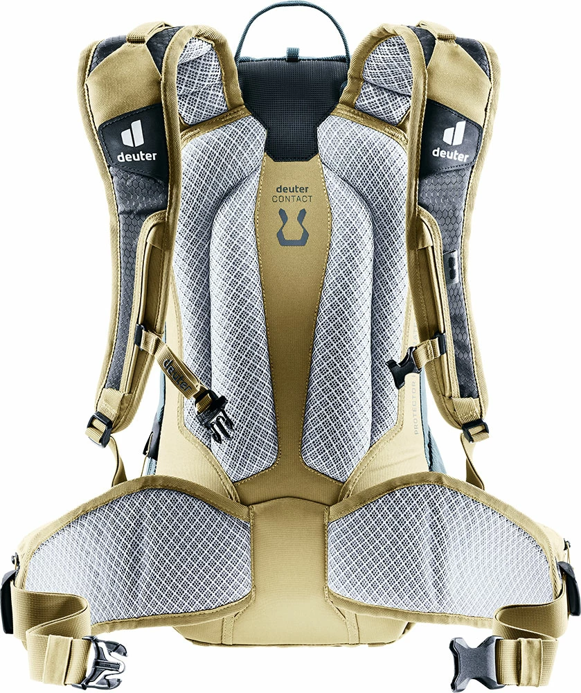 Le sac à dos de protection deuter Attack, certifié TÜV/GS, offre la meilleure protection pour les vététistes ambitieux sur les trails exigeants. Le protecteur dorsal est amovible et reprend sa forme initiale après déformation. Associée au système de portage, elle forme une protection contre les chocs qui correspond au standard pour les motards.