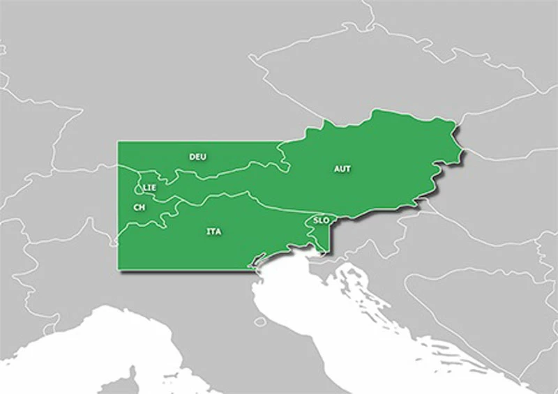 Comprend des cartes topographiques numériques pour toute l’Autriche et le Liechtenstein, avec une couverture supplémentaire pour certains territoires du sud-est de l’Allemagne, de l’est de la Suisse, du nord-est de l’Italie et de l’ouest de la Slovénie.
