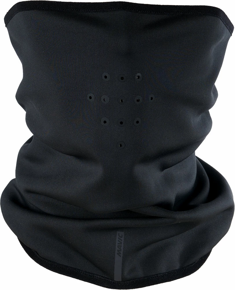 Fabriqué en matériau rugueux de poids moyen (295 g/m²), bien isolant et très absorbant, le cache-cou empêche efficacement le froid de pénétrer tout en permettant une circulation d’air suffisante grâce aux aérations découpées au laser. Idéalement, il est tiré sur la bouche pour permettre l’inhalation même dans des conditions froides. Cependant, son matériau très élastique s’adapte également à tout autre style de port sur le cou et l’arrière de la tête jusqu’à sous le casque. C’est pourquoi Mavic a également accordé une grande importance aux finitions des ourlets, qui ne créent pas de points de pression sous le casque. Pour encore plus de sécurité lors des sombres journées d’hiver, le décor imprimé rétroréfléchissant offre une visibilité maximale.