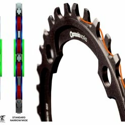 LicenciĂ© et dĂ©veloppĂ© en collaboration avec Mountain Racing Products, le profil de dent Ă motif Wave™ applique une force latĂ©rale alternĂ©e Ă chaque maillon de la chaĂ®ne pour retenir activement la chaĂ®ne Ă l’anneau – allant au-delĂ des implĂ©mentations Ă©troites/larges qui reposent uniquement sur la friction, tout en laissant de la place pour que la boue, les dĂ©bris et les gravillons s’Ă©chappent. La conception Wave™ s’use Ă©galement plus lentement que les conceptions concurrentes en rĂ©partissant la charge sur de plus grandes surfaces.