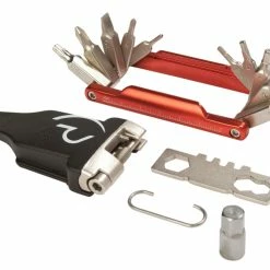 - Multi-outil très compact avec 19 fonctions comprenant sept clés hexagonales (2/2,5/3/4/5/6/8mm), un embout Torx T25, un tournevis cruciforme No 1, un tournevis plat de 5mm et trois clés plates (8/9/10mm). Comprend également un démonte-pneu, un outil pour la chaîne et trois clés à rayons (3,2/3,3/3,5 mm), très utiles pour toutes les sorties à vélo
