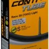 La chambre à air SV 20 extra-légère de Schwalbe avec valve Sclaverand convient aux vélos de course 28″ avec des pneus de 18-622 à 25-622 (ETRTO).
