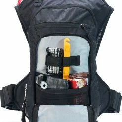 La capacité de stockage totale du sac est de 9 litres, répartis sur 8 poches de stockage, dont une poche d’organisation intelligente qui vous permet de tout organiser et d’y accéder rapidement. À propos – il y a plusieurs points de fixation intelligents pour votre casque, vos genouillères et vos coudières. Il dispose également d’une poche pour téléphone sécurisée, résistante à l’eau et zippée, à l’arrière.